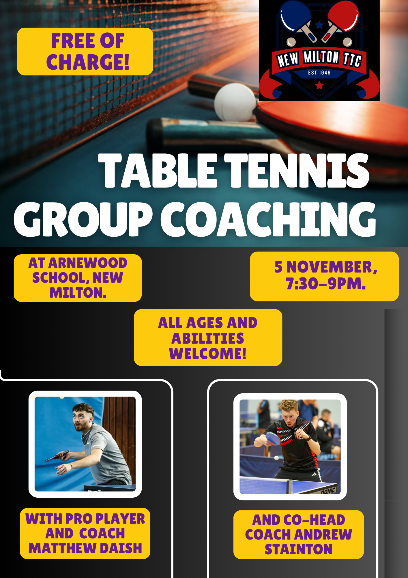New Milton Table Tennis Club has kicked off an exciting new coaching initiative together with Arnewood School, offering both a free open group session for the community and a brand-new after-school club for pupils.