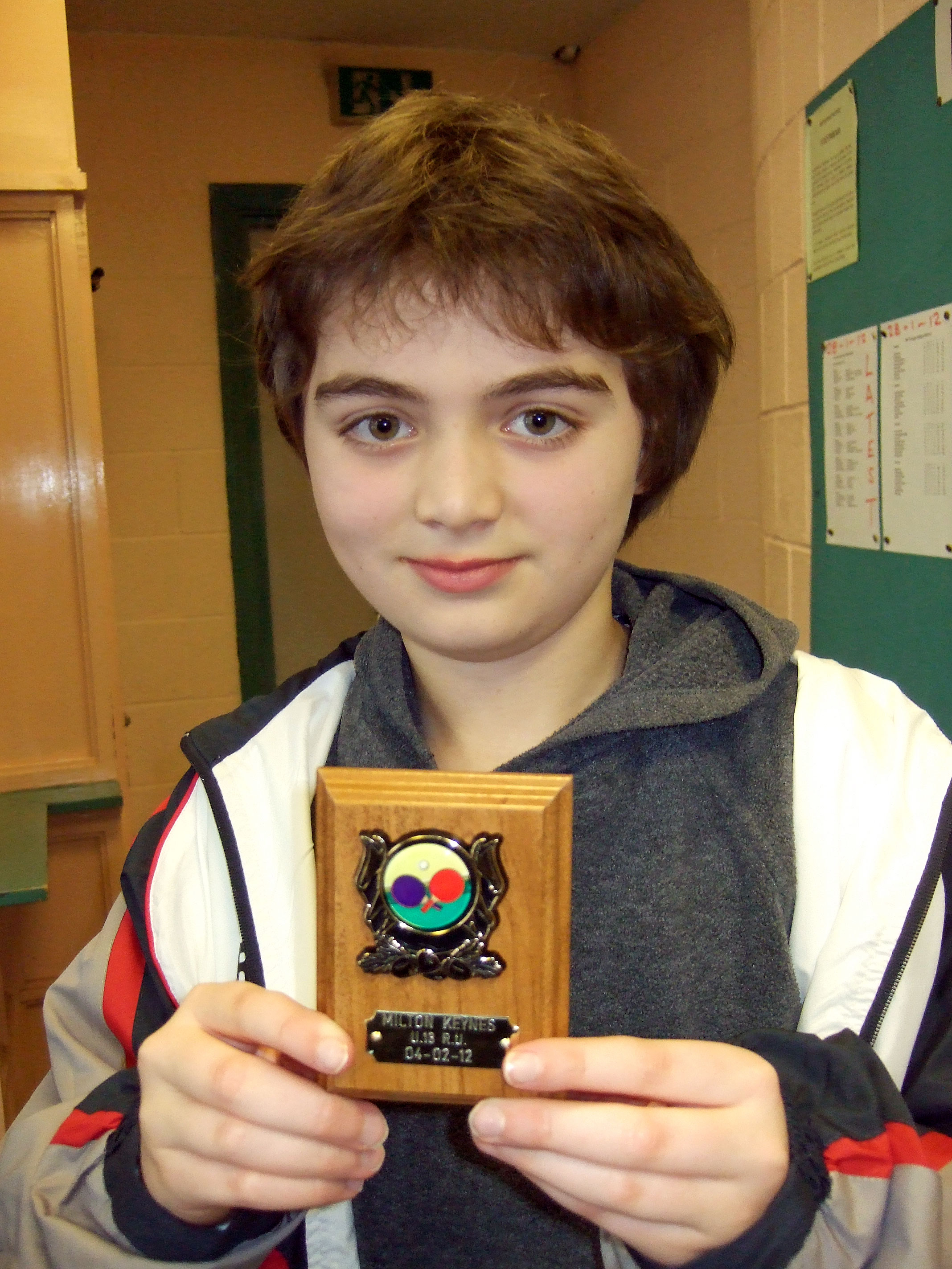 Matthew got off to a great start, winning both of his group matches and topping his group. In the next group Matthew came up against a tough opponent Ben Proud (ranked 9th in the U-12s). Daish eased past Proud 3-1 to claim the victory. His second opponent was Hiba Feredj ( ranked 2nd in the U-13 girls). Daish edged it 3-2 after his coach Peter Daish called a “time-out” at a critical point which saw Matthew through to the final.