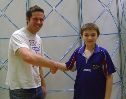 Matthew sealed the victory with the help of the coach to win 3-1 which saw him through to the quarter-finals. Matthew’s quarter-finals match was against Lewis Acton. This was the toughest match so far but thanks to a lot of help from the coach Matthew won 3-2.