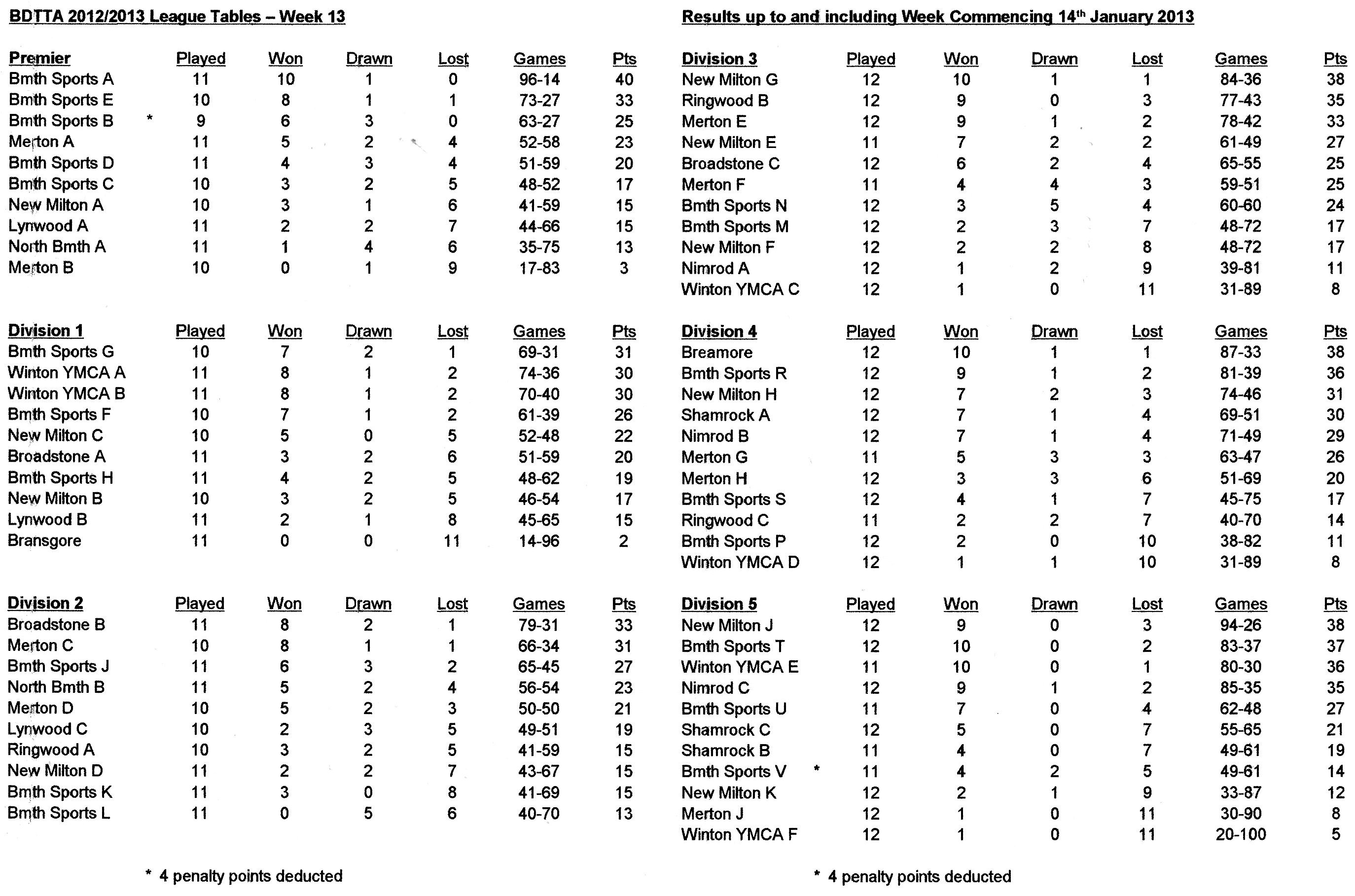 “J” & “G” – TOP OF THE TREE (WEEK 13 LEAGUE TABLES)