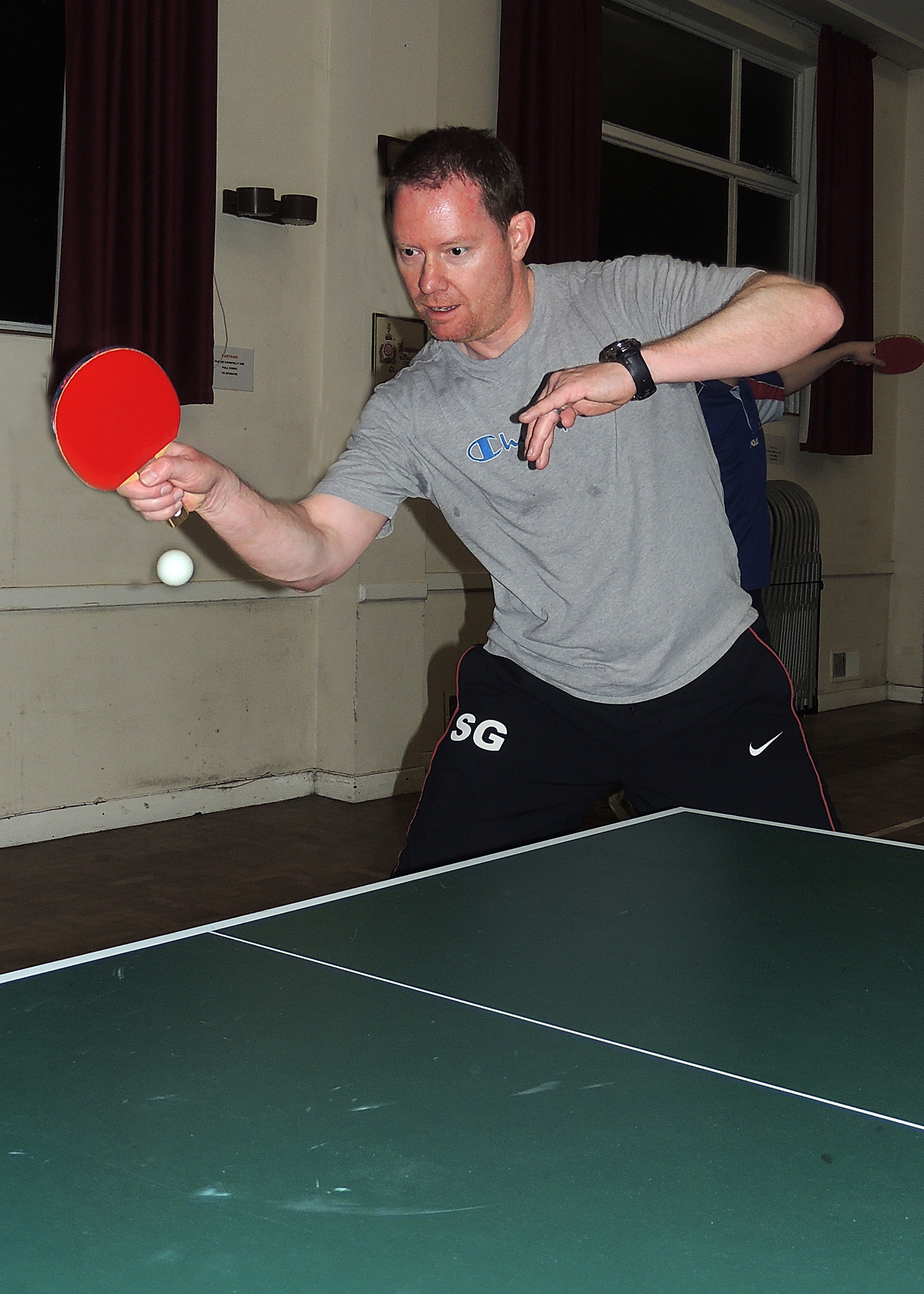 There were some terrific individual performances once again however, with the G team’s Simon Golding recording his second hat-trick to help his side to only their second victory in Div 3. Golding capped his evening by helping Bev Scott-Johns to win the doubles to make it 7-3. Malcolm Floyd came up with his second hat-trick in a row as he captained his C team to victory in Div 2.