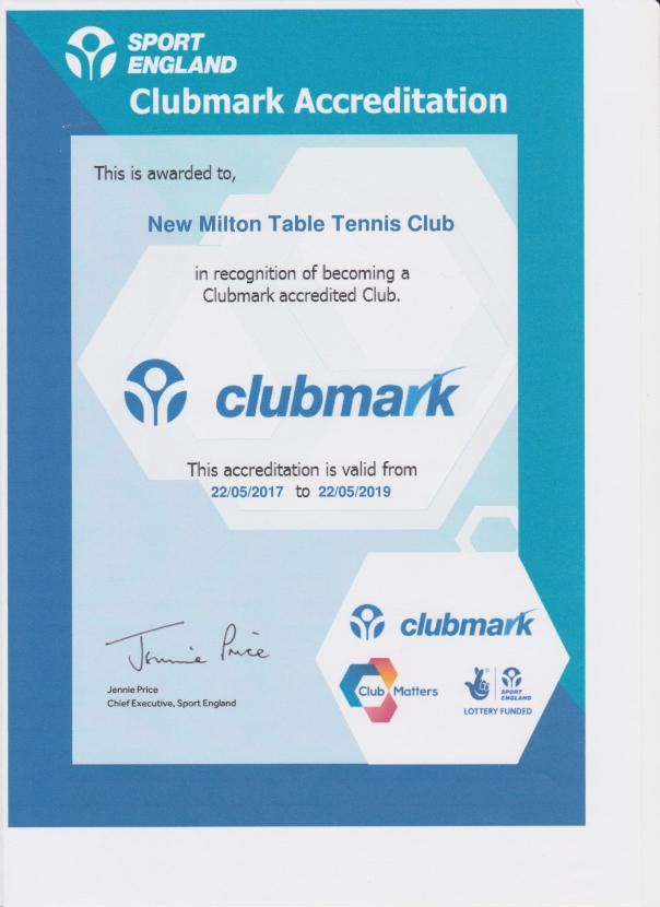 The Club was congratulated by Table Tennis England, its National Governing Body, for the high quality and speed of its submission. We think that 6 weeks must be some kind of a record, but this is yet to be confirmed by Table Tennis England. Malcolm would like to thank the officers and committee members for their help and support in this magnificent achievement, particularly club chairman Steve Hemmings.