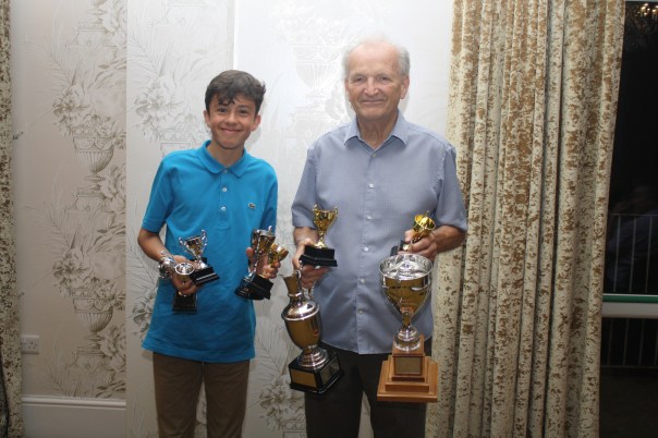 The club’s oldest player, 80 years young Brian Bickell won the Vets 60+ and the Vets 70+ titles, and the club’s youngest player, 13 year old Adam Titcombe picked up his Div 5 Individuals winners trophy. The club’s second youngest player, 14 year old Jack Trafford won the Junior Under 15 title and also came away with runners-up trophies for the Junior Under 18s, Division 2 and the Bournemouth Handicap. Jack and Brian, separated by a mere 66 years but together in table tennis, are pictured proudly displaying their trophies.